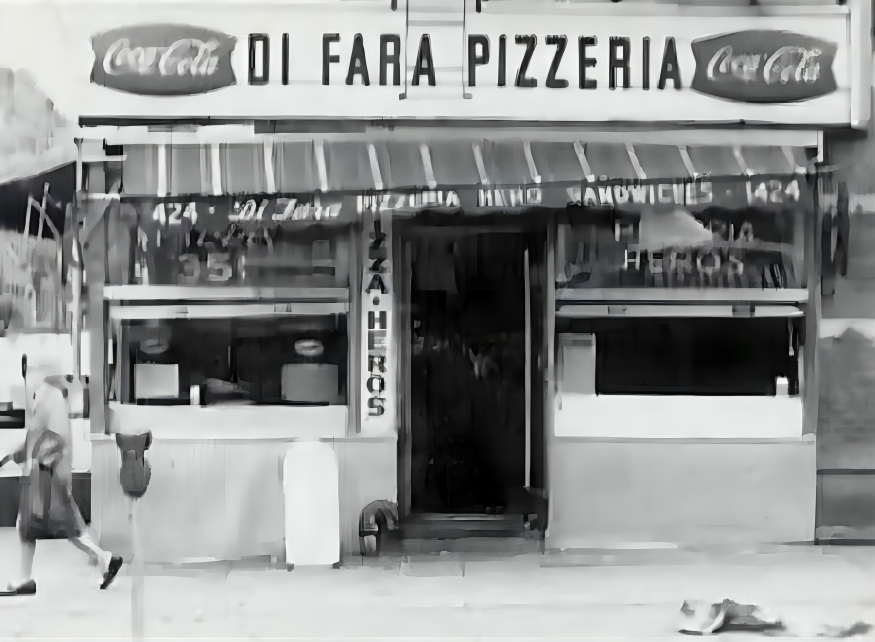 The very first Di Fara pizza was baked right here (pictured on the right) in the Midwood neighborhood of Brooklyn in 1965.